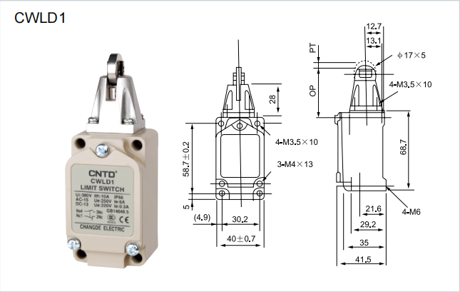 CNTD INTERRUPTOR DE LIMITE 1NC+1NO CON RODAJA 600V 10A Modelo: CWLCA2-2