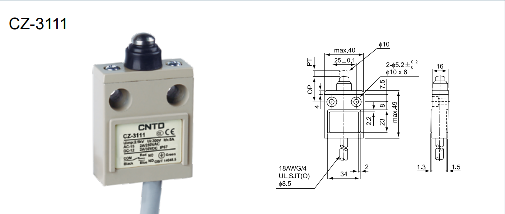 CNTD INTERRUPTOR DE LIMITE 250V 5A Modelo: CZ-3111