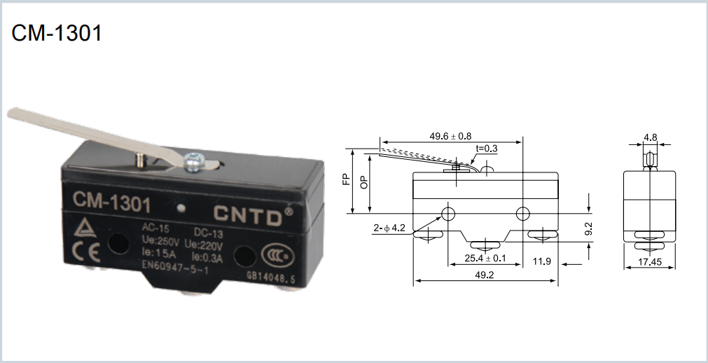 CNTD INTERRUPTOR DE LIMITE 500V 15A Modelo: CM-1301