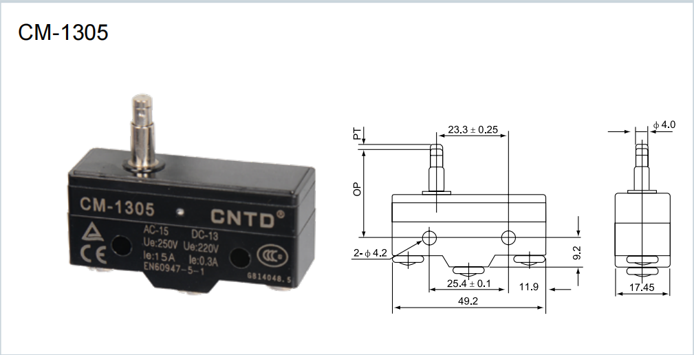 CNTD INTERRUPTOR DE LIMITE 500V 15A Modelo: CM-1305