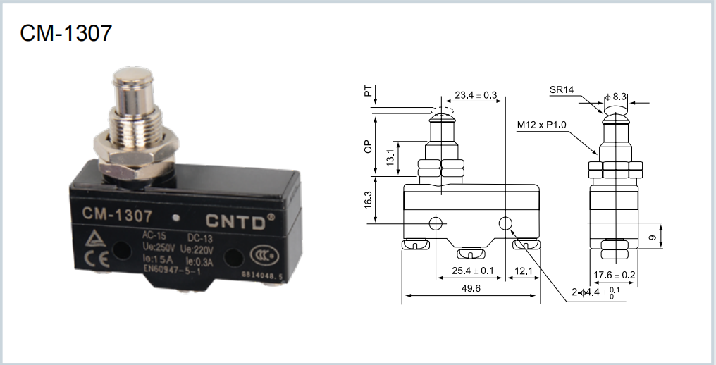 CNTD INTERRUPTOR DE LIMITE 500V 15A Modelo: CM-1307