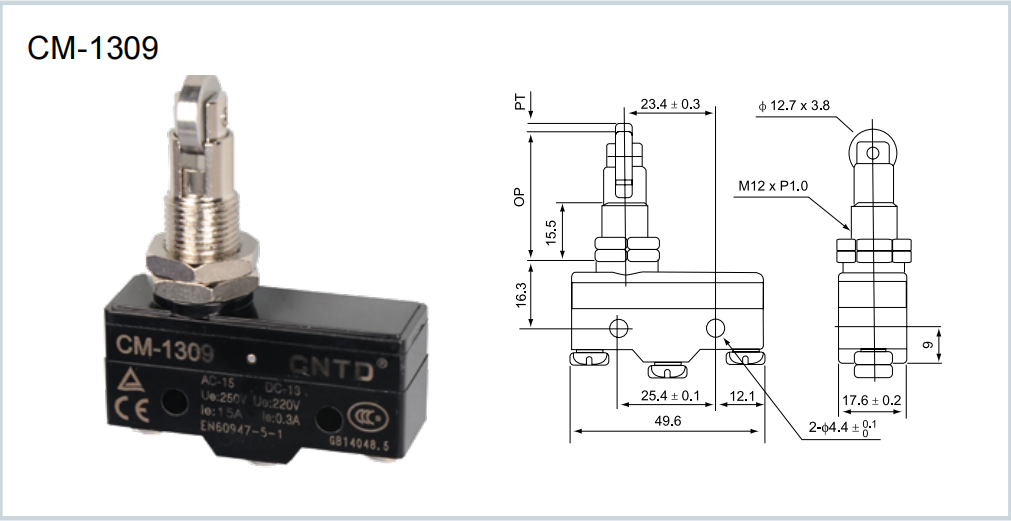 CNTD INTERRUPTOR DE LIMITE 500V 15A Modelo: CM-1309