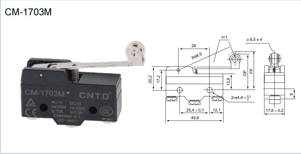CNTD INTERRUPTOR DE LIMITE 500V 15A Modelo: CM-1703-M