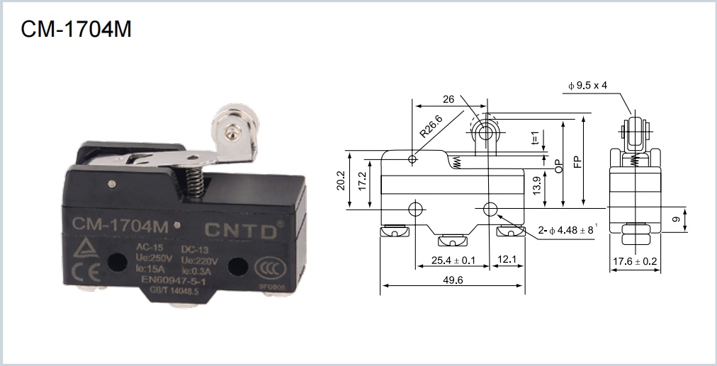 CNTD INTERRUPTOR DE LIMITE 500V 15AModelo: CM-1704-M