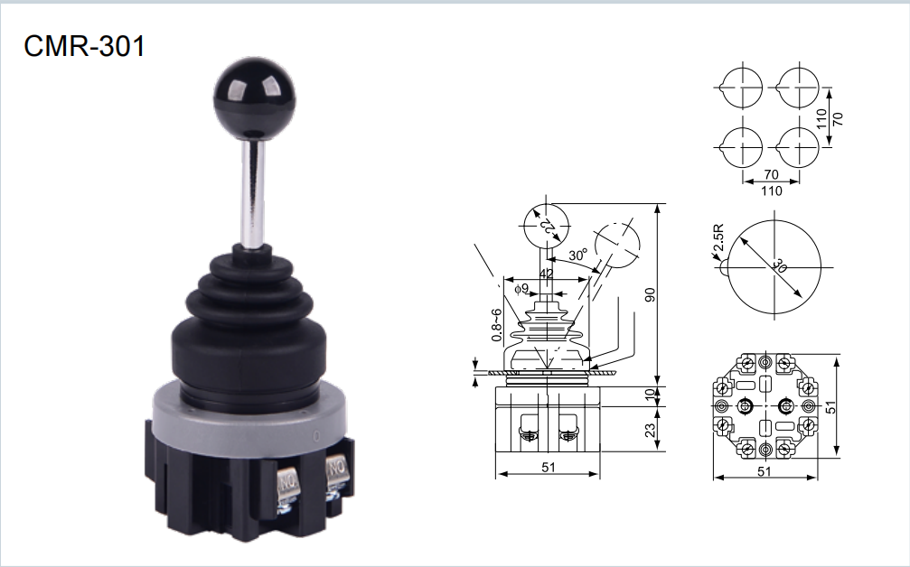 CNTD MANDO DE PALANCA 2 POSICIONES ESTABLE 600V 50A Modelo: CMR-301-1